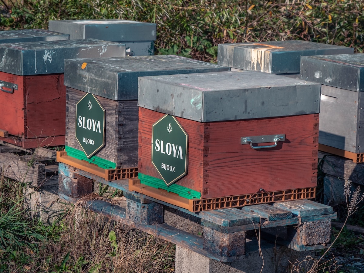 Chez Sloya, notre passion pour la nature est au cœur de notre mission, guidant chaque action que nous entreprenons. Nous avons installé deux ruches dans la nature jurassienne, où environ 50 000 abeilles trouvent refuge chaque année, contribuant ainsi à la préservation de ces pollinisateurs essentiels. Fabriquées localement avec des matériaux issus de circuits courts, nos ruches soutiennent l'apiculture régionale et minimisent notre empreinte environnementale. En partenariat avec un apiculteur local passionné, nous nous engageons à protéger les abeilles tout en produisant du miel d'Acacia de haute qualité, dont les bénéfices sont entièrement réinvestis dans l'apiculture locale. À travers nos actions, Sloya est plus qu'une marque de bijoux; c'est un engagement profond pour la nature, pour les abeilles et pour notre planète. Ensemble, protégeons les abeilles.